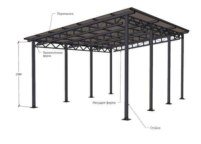 Покрытие(поликарбонат,металлочерепица,металлопрофиль) выбирается и расчитывается отдельно.